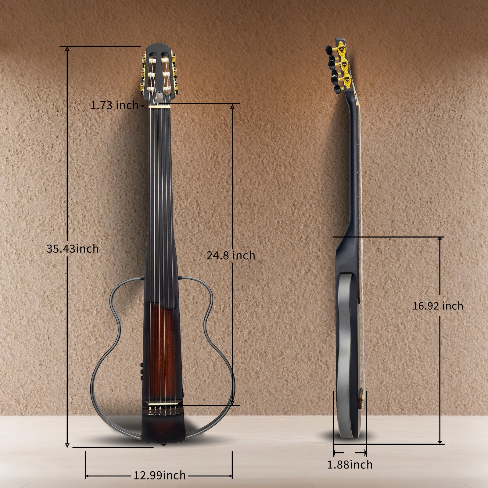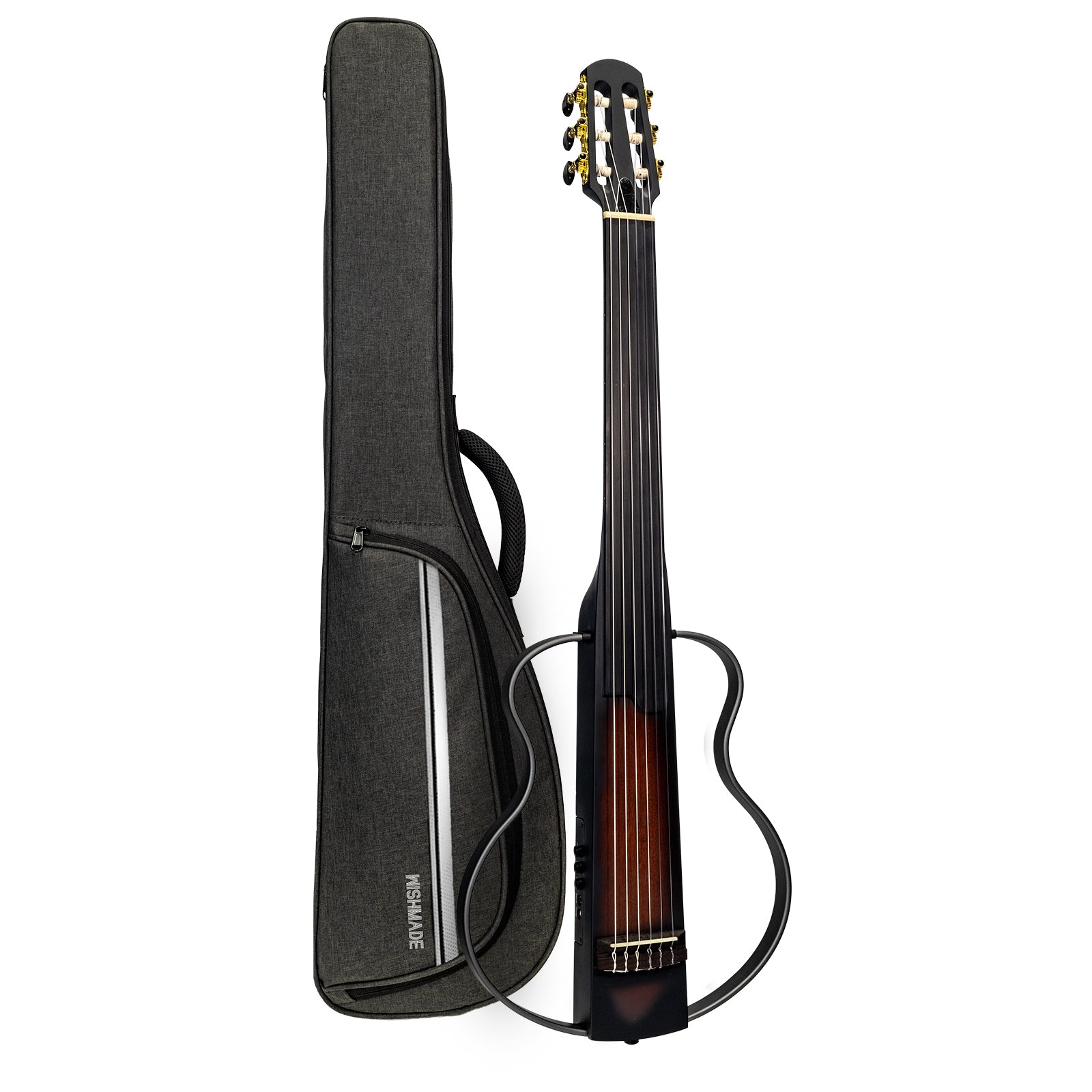 WISHMADE Fretless Silent Travel Guitar| Electric Classical Guitar Classic Nylon String |Mahogany Body with Removable Frames, Gig Bag